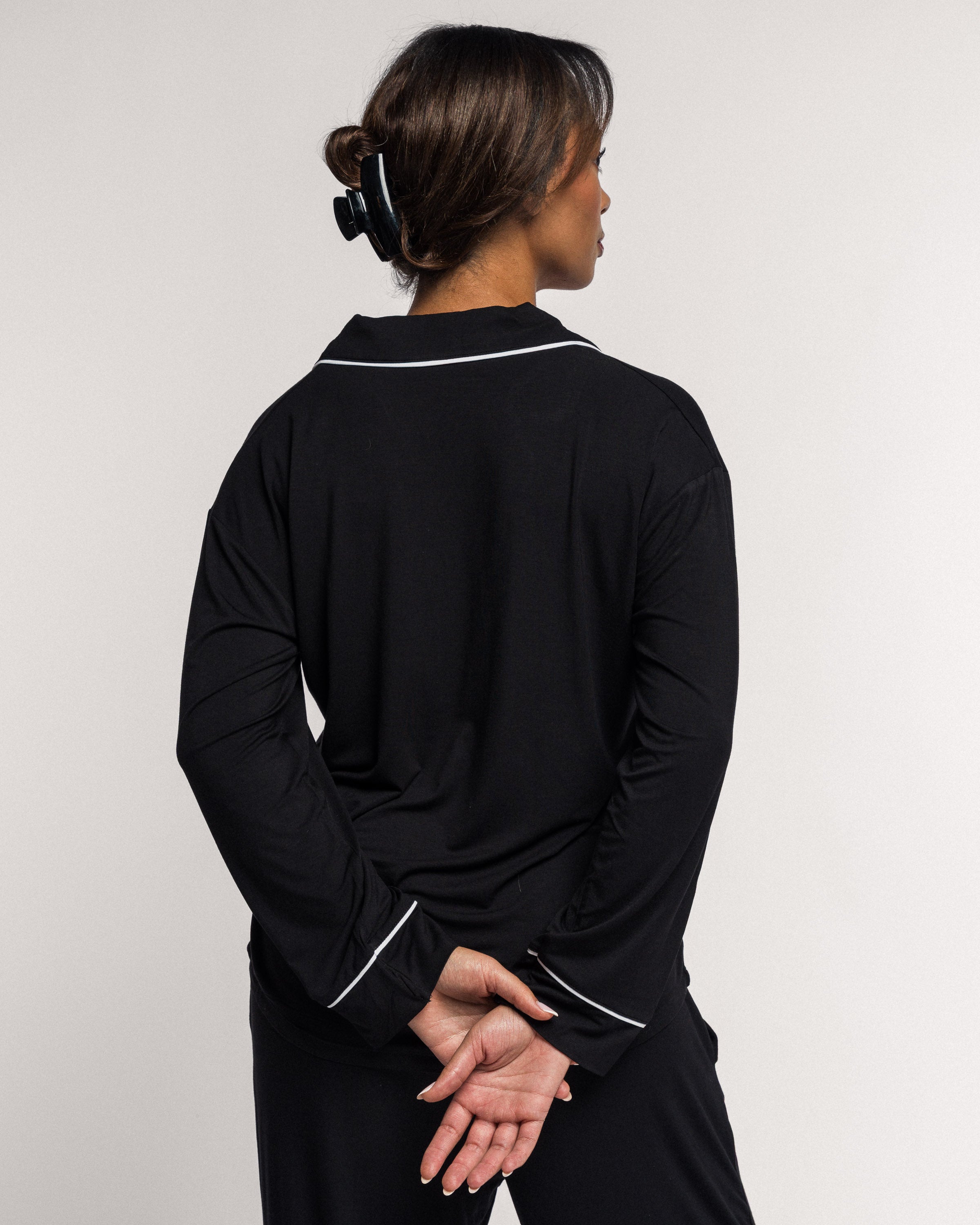 LOUNGE PYJAMAS SHIRT is not only classic and beautiful, but also super soft, stretchy, and incredibly comfortable! We promise this will become your new go-to pyjamas. Perfect for cozy days at home or slow weekend mornings. Pair it with our matching Lounge pyjama pants. The pants feature pockets and an elastic waistband.